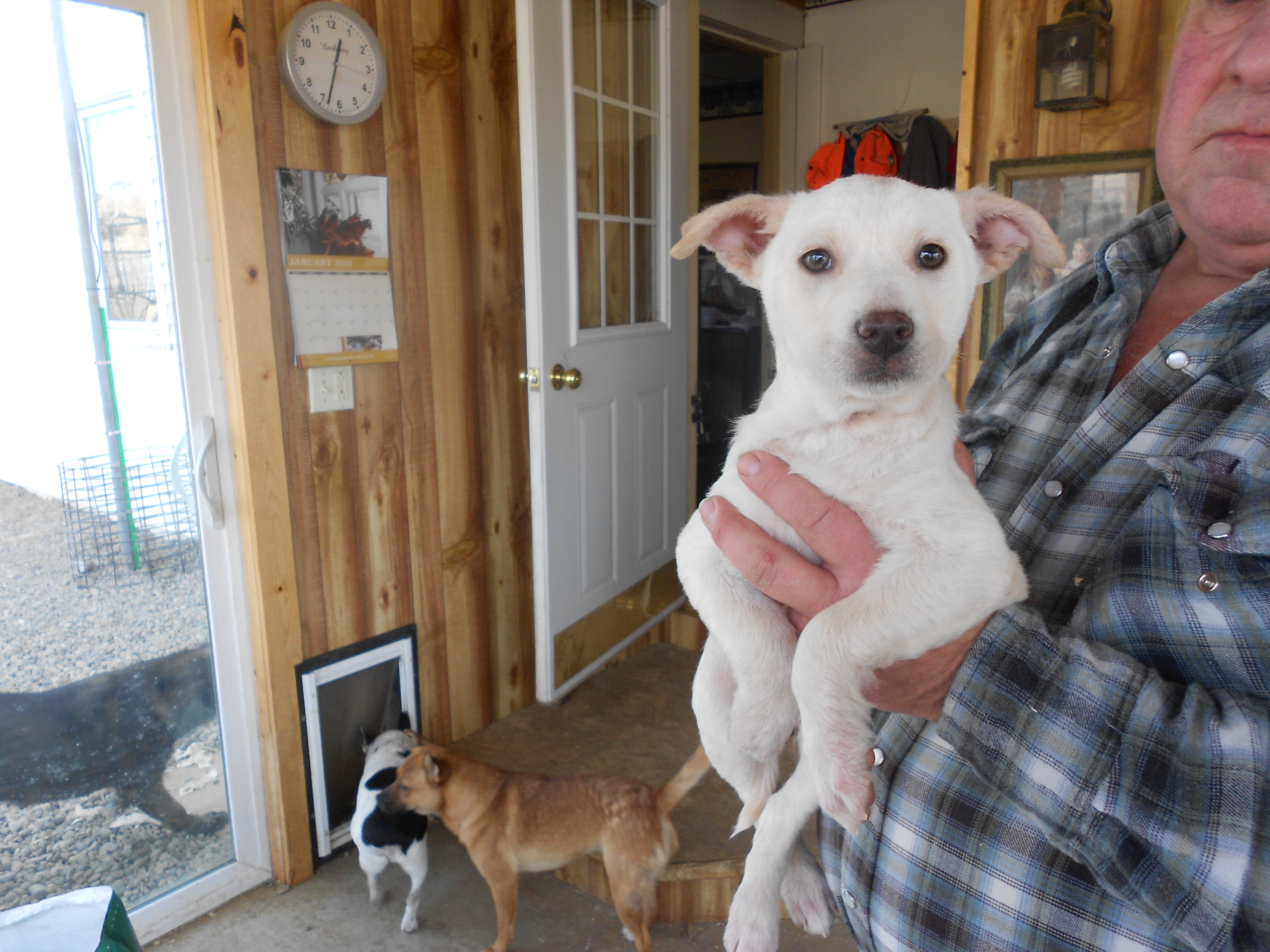 Bootsie is white and Maggie Mae is black–they are the last 2 puppies of the Chow/Lab litter. They have all their hair back and are adorable and anxious for their new forever families. Right now they are hanging out with the 4 puppies left of Freckles. Skittles, Kibbles, Cracker & Milo are a little younger than the Chow Labs, but make up for it in size. Milo is going to be the biggest of the crew. They are all very healthy and eating 12 HIlls out of house and home. Call us and let us know if you are interested in any of these special puppies.
