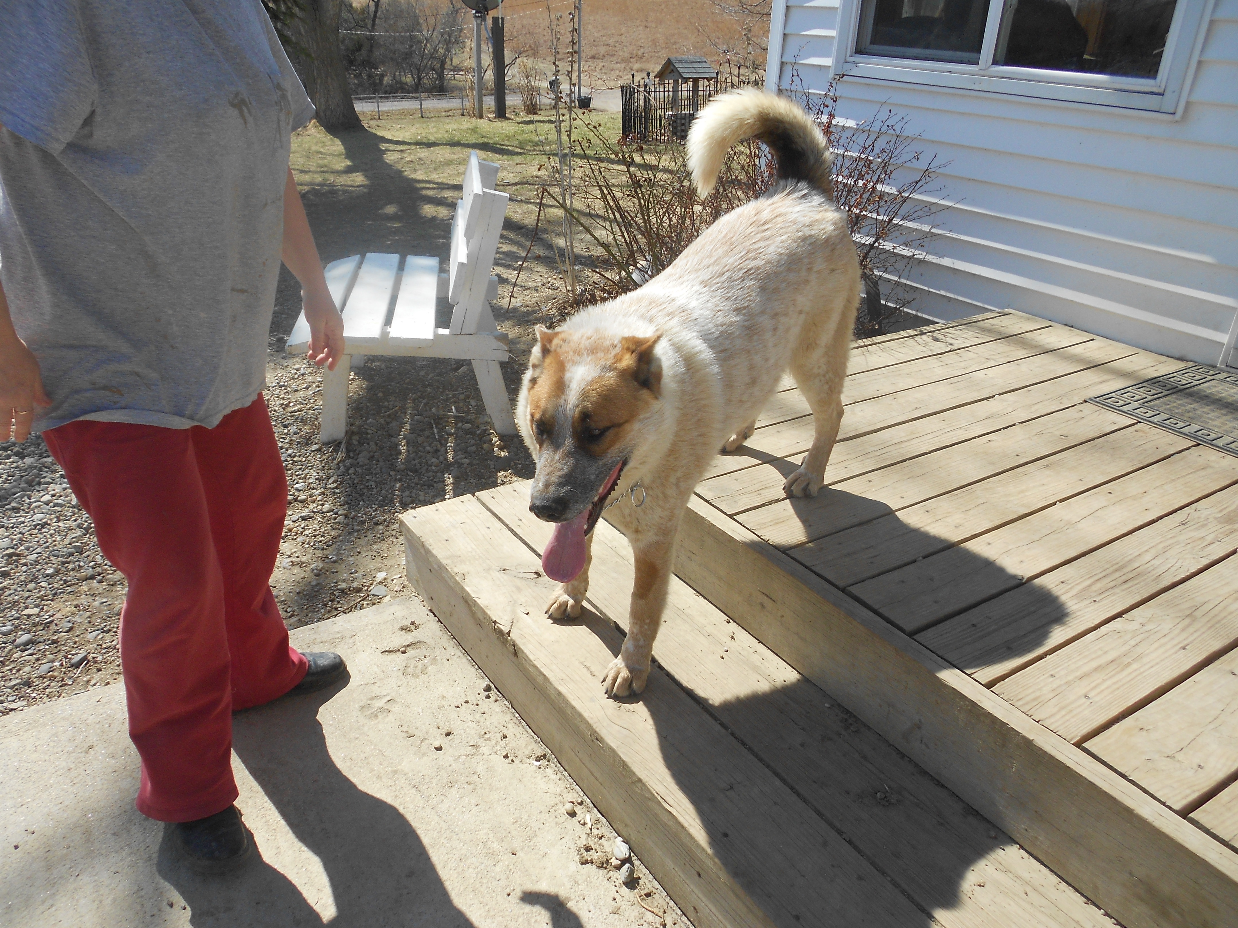 Sarge came to us a few months ago. He is a gorgeous Red Australian Shepherd/Akita mix. Was surprises us is his sweet personality. He doesn’t push his weight around with the other dogs, but is good with everyone. He even likes to play with Peaches our pittie.