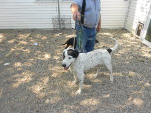We also have Loki—a year old Great Pyranese mix that needs a new home. He should be out in the country, so he can run and play. Alaska is a young female mix that is a larger breed dog. She is white with black spots. Her breed is also a mystery, but could be a Lab mix.