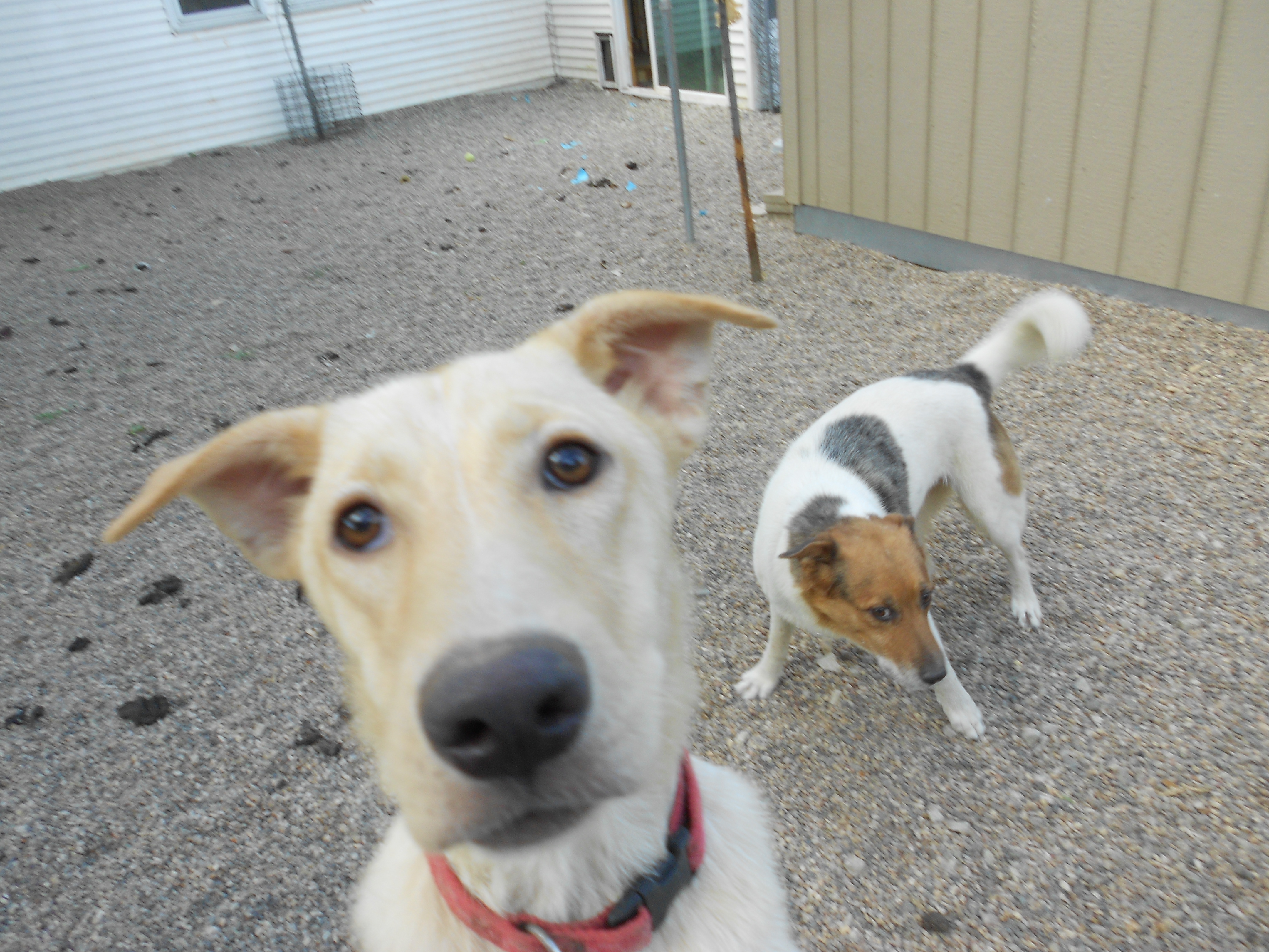 re holding up in this heat. Today I awoke to wet grass–it must have showered in the night. Yeah! Not much, but it seemed to energize the dogs this a.m. Getting back to Alice–she is spayed and had her vaccinations. She has a mohawk scruff of hair on her neck. Otherwise, she looks exactly all yellow lab. Call us if you want to meet her or her friends at 12 Hills.