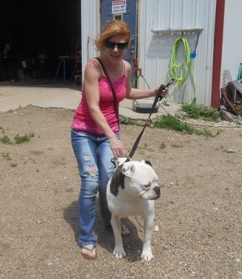 Case in point is the story of Oswald. He came to us, a little on the thin side, and at once we knew he was a special dog. Oswald, or Ozzie as I call him is an Aussie Bulldog, white with brindle markings. He was low key, loving and always minded his own business, when he was out in the exercise pen. A few times he was allowed to go on the exercise run, but he enjoyed going over to our neighbors and visiting their dogs too much. So