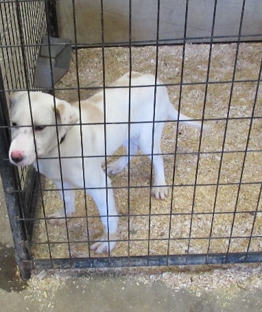 We named her Elsa, because of her pure white coat, with just a few faded tan circles on her back. She is about 5 months old, but you can tell she is a beauty in the making. Elsa came to us from a local animal control, and is a little thin at this time. Another week, of good food and care, and we believe Elsa will be ready to go home with her special family. Elsa appears to be a lab mix, and is under 6 months old. She is sweet, loving and of course just a little shy right now. The pictures show how she looked when she arrived at the rescue. We hope to have more to share soon. If you are interested in Elsa, call the rescue and set up an appointment to meet her.