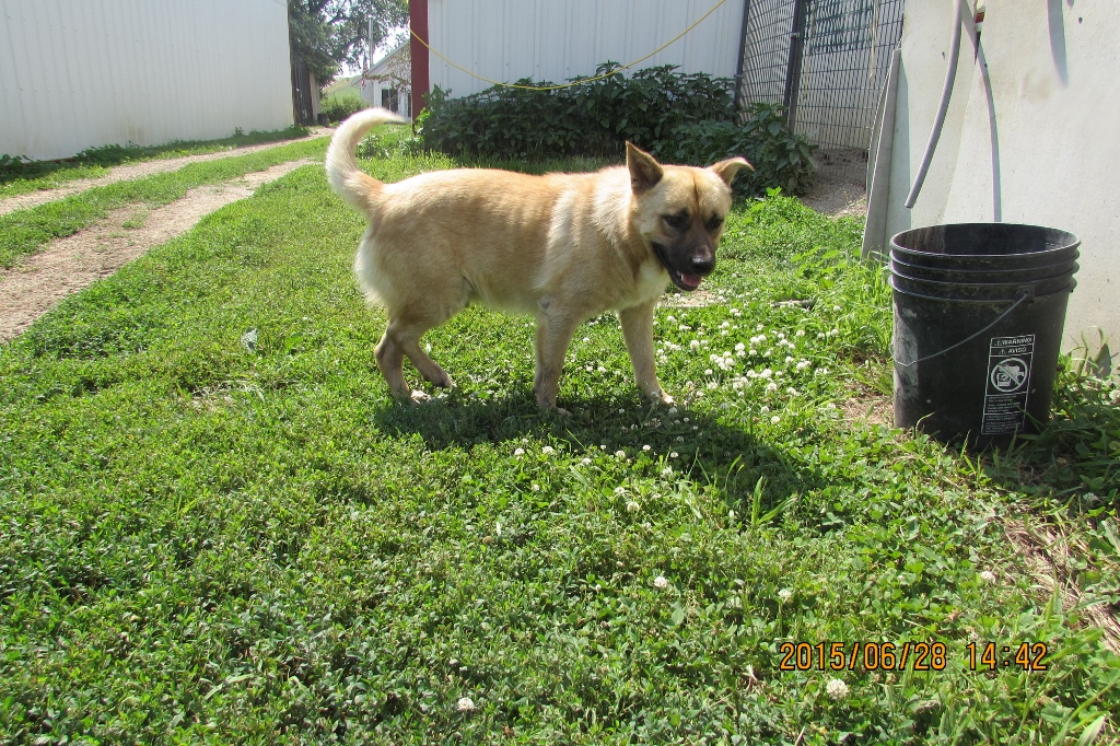 I can’t forget to mention Ginger! She has been waiting and waiting. Ginger was found in a drainage ditch. She had been dumped and living there for some time. A kind man finally captured her and brought her to the rescue. At first, Ginger was fearful of people, but with lots of love and attention she is Miss Social. Ginger is allowed to run on the farm without a leash. She runs and runs and never bothers anything. When she is finished with her exercise, she comes back and goes right into her kennel. A great gal, that doesn’t demand a lot of attention. We are thinking she is 4 years of age, has been spayed and has all her vaccinations. A beautiful doggie–thinking a lab/corgi mix.
