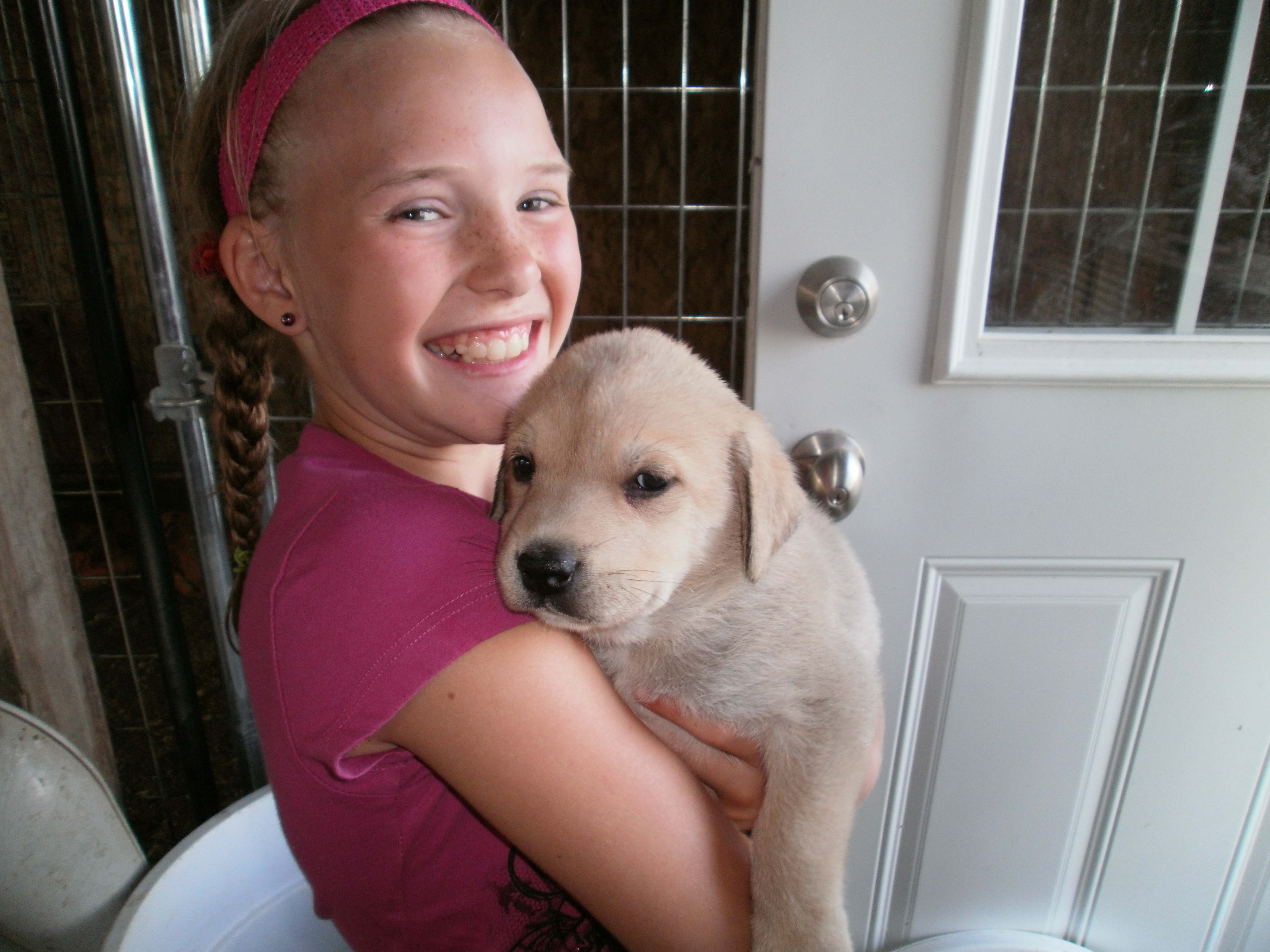 Before they headed back home, I gathered everybody together for a picture. The kids each grabbed a dog and we let the others run around in the group and posed under the rescue’s sign. I got a great picture of them. I think the kids had a great time helping out.
