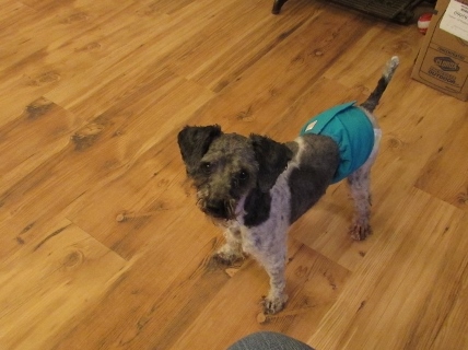 Shaggy, (what everyone called him) is a different dog already. He is so handsome and he knows it. He begs to be held, in fact, he wants us to carry him everywhere. I just don’t have the heart to put him back in the big kennel, so he is now wearing a wrap in the house, and we are beginning his next new adventure, house training.